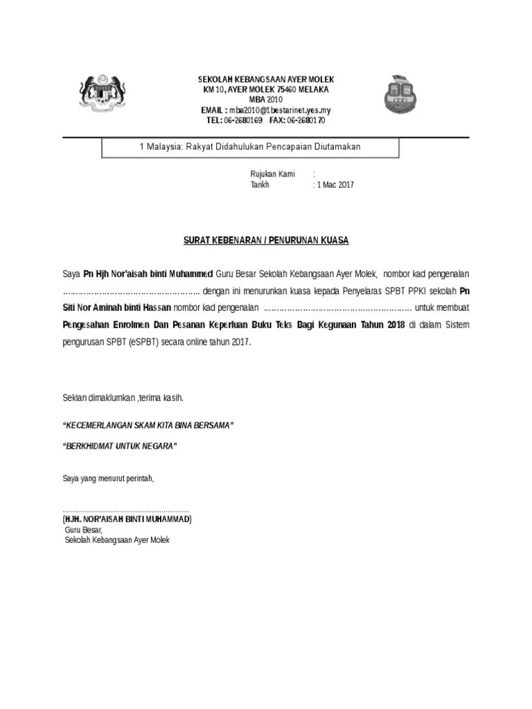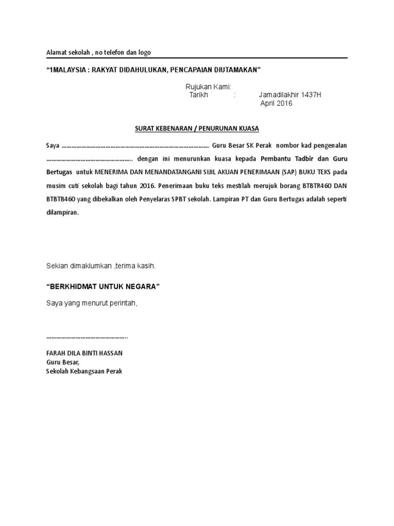 Contoh surat penurunan kuasa di bawah ap xx.pdf. Contoh surat penurunan kuasa eperolehan. Dipaparkan pada 31 disember 2018 oleh web master 1391 muat turun. Contoh surat serah tugas guru. Contoh surat penurunan kuasa guru besar kepada penolong kanan. 15 contoh surat kuasa perwakilan biasa pengambilan dokumen dll. Jalan gambang, 25150 kuantan kuantankuantan,pahang darul makmur. Muat turun (pdf, 373 kb). Saya shariman bin shahidan guru besar sk sri . Skdm 1/08/07/002/( ) tarikh :
